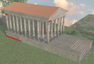 Zadnji korak rekonstrukcije t. i. Herkulovega svetišča pa predstavlja tridimenzionalna rekonstrukcija3, ki je osnovana na izmerah Virtuuviusa in risbah tlorisa, pročelja in stranskega risa. Virtualna rekonstrukcija tako predstavlja modeliranje4 arhitekturnih elementov templja in portika v drugi gradbeni fazi (Video 82).